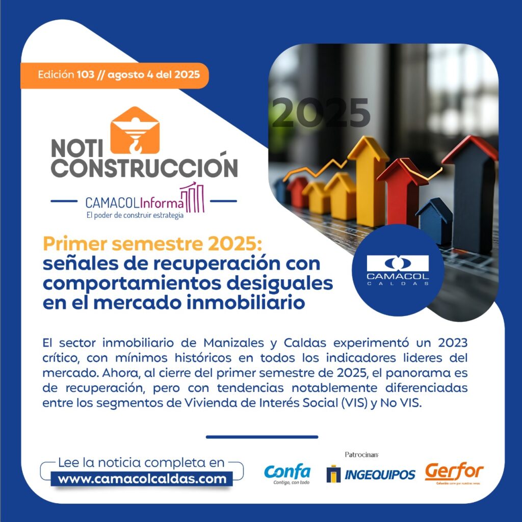 El sector inmobiliario de Manizales y Caldas experimentó un 2023 crítico, con mínimos históricos en todos los indicadores lideres del mercado. Ahora, al cierre del primer semestre de 2025, el panorama es de recuperación, pero con tendencias notablemente diferenciadas entre los segmentos de Vivienda de Interés Social (VIS) y No VIS.