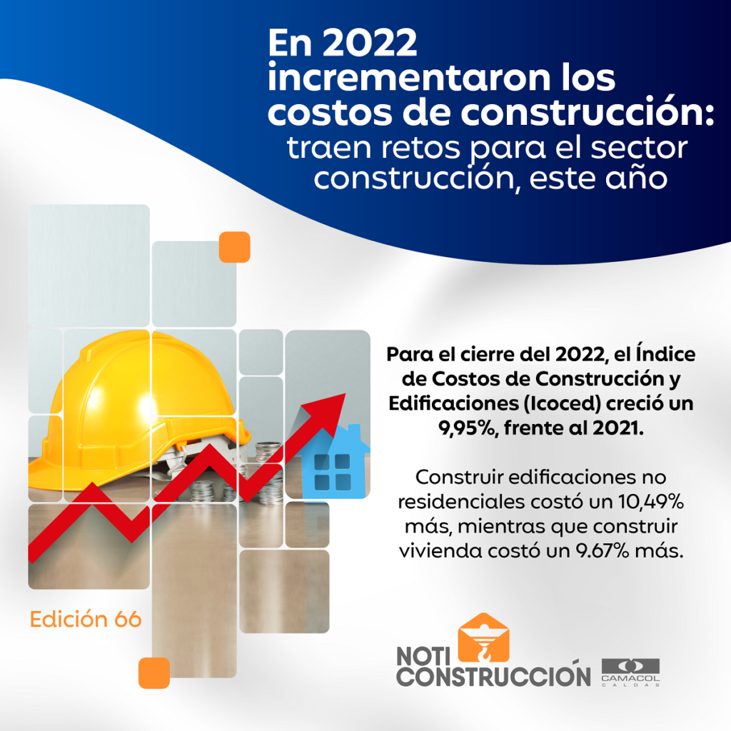 Para el cierre del 2022, el Índice de Costos de Construcción y Edificaciones (Icoced) creció un 9,95%, frente al 2021. Construir edificaciones no residenciales costó un 10,49% más, mientras que construir vivienda costó un 9.67% más. Por grupos de costo, los incrementos de precios se presentaron en herramienta menor (16,01%), servicios generales de la construcción […]