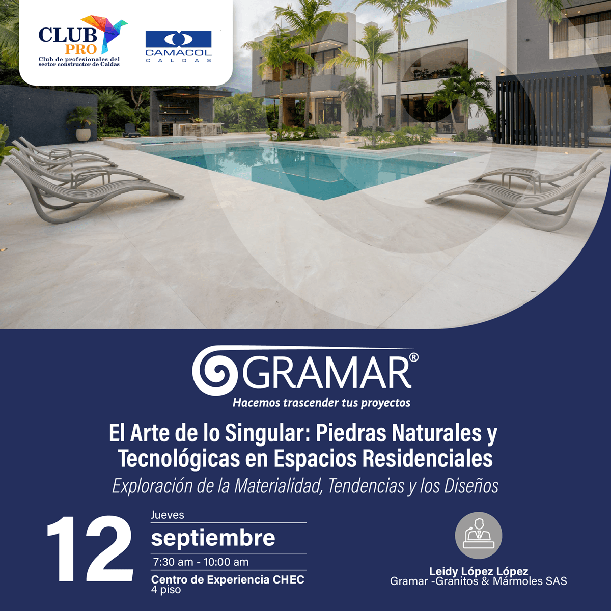 Conferencia con empresa GRAMAR, sobre tendencias, diseños, materiales y el uso de la piedra natural y tecnológica en acabados residenciales.
