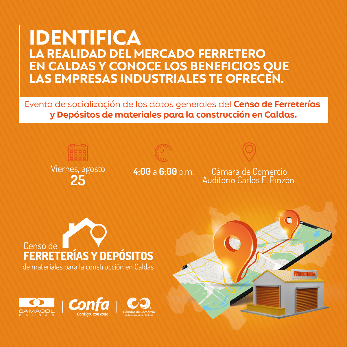 Te invitamos al evento de socialización del ÚNICO Censo Ferretero de todo el Eje Cafetero, el cual ofrece un panorama completo y minucioso de la realidad de este mercado en los 27 municipios de nuestro departamento.